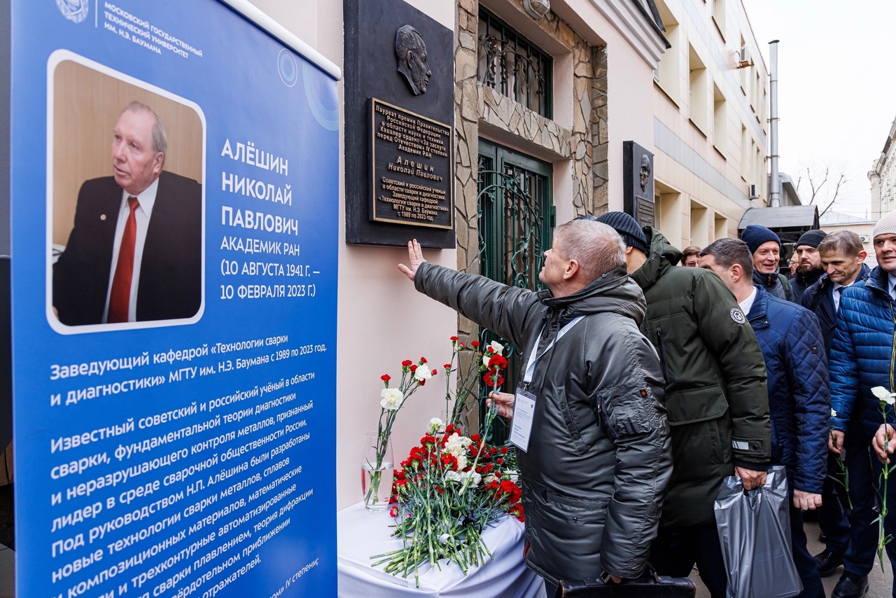 В рамках мероприятия состоялось открытие барельефа Академику РАН Н.П. Алешину на фасадной стене историческом здании кафедры.
