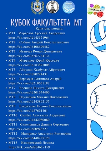 Для того, чтобы получить бодрящий заряд энергии и проверить себя, приняв участие в соревнованиях за звание самой сильной, выносливой и сплоченной кафедры, вам необходимо записаться в список желающих участвовать, обратившись к капитану, отвечающему за команды вашей кафедры (ниже приведён список с контактными данными).