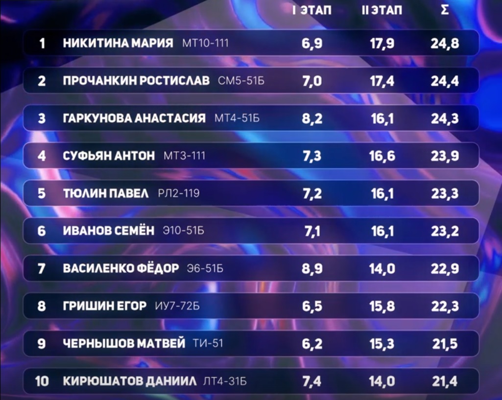 В конкурсе ребята показали себя на все 100%. Результаты представлены ниже.