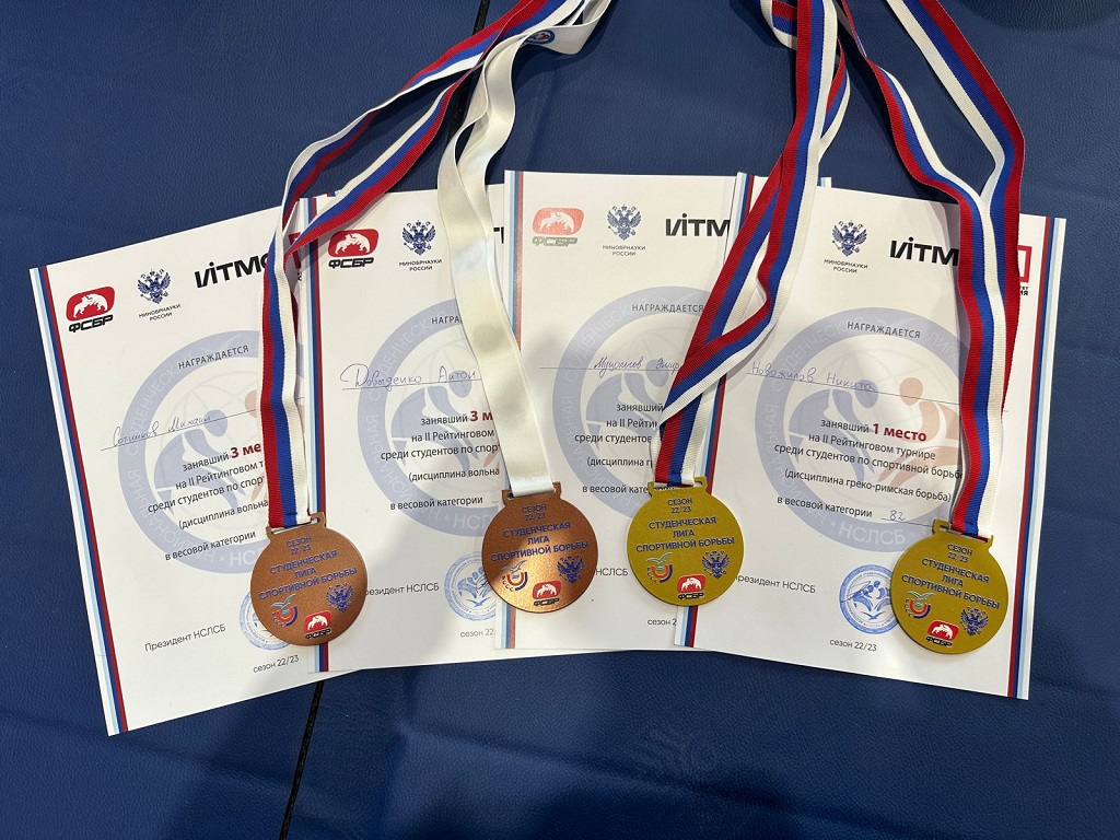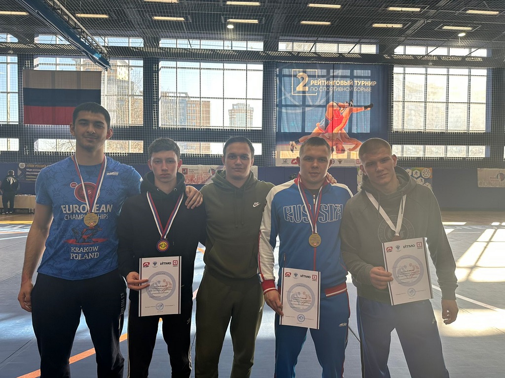 Студент пятого курса факультета МТ МГТУ им. Н.Э. Баумана Новожилов Александрович, группа МТ7-102 в составе сборной команды МГТУ взял I место на Рейтинговом турнире среди студентов по спортичной борьбе по дисциплине "греко-римская борьба".