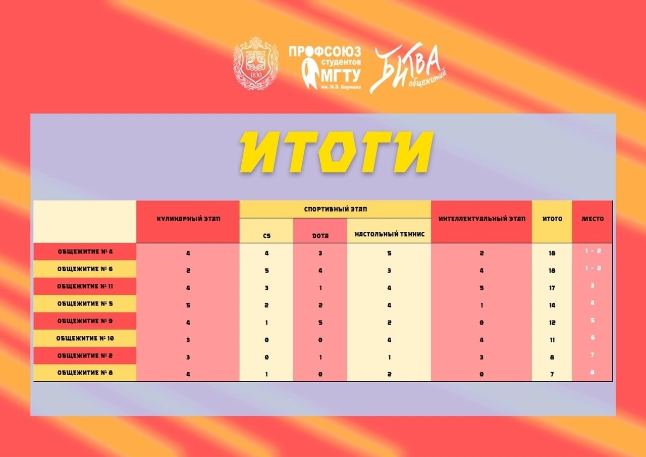 По результатам всех этапов первое место заняло наше общежитие N°4.