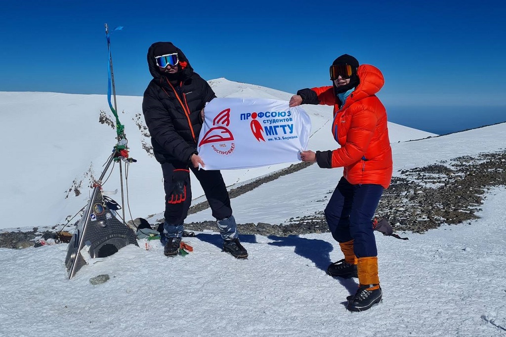 9 августа 2024 года студент группы МТ5-42, Евгений Чернавский, вместе со своим отцом, подняли флаги с символикой МГТУ им. Н.Э. Баумана на восточную вершину самой высокой горы России и Европы.